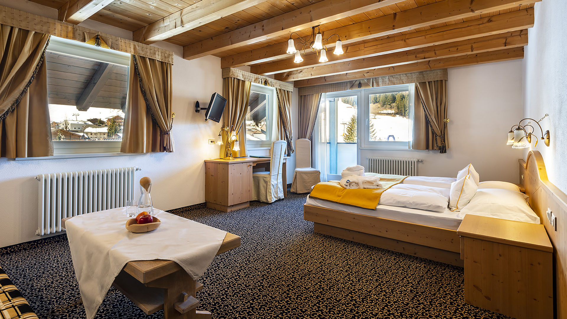 We have three types of rooms all equally welcoming and comfortable, equipped with every commodity and service you can expect from the best Dolomites accommodation. Most of them have a balcony or terrace and offer interesting view of the surrounding Ladinian village with the Dolomite landscape to cheer you as you awaken.